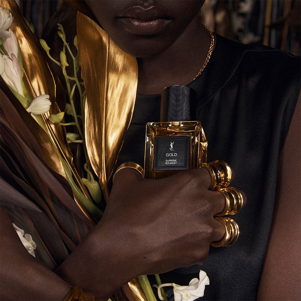 In Gold, its scent blends the world's most exquisite flowers: jasmine, tuberose and Ylang Ylang. Their petals shimmered with gold capture a luxurious essence that is as radiant as it is long-lasting, leaving an opulent sillage to become the supreme version of oneself.