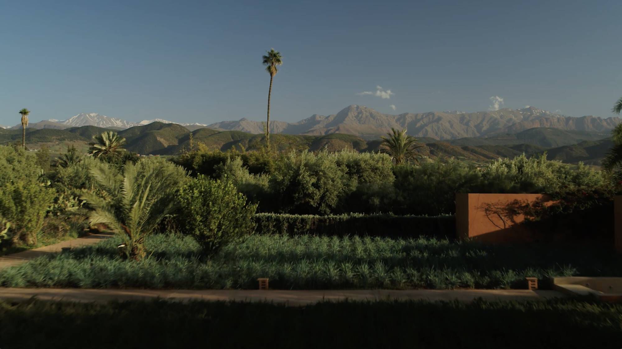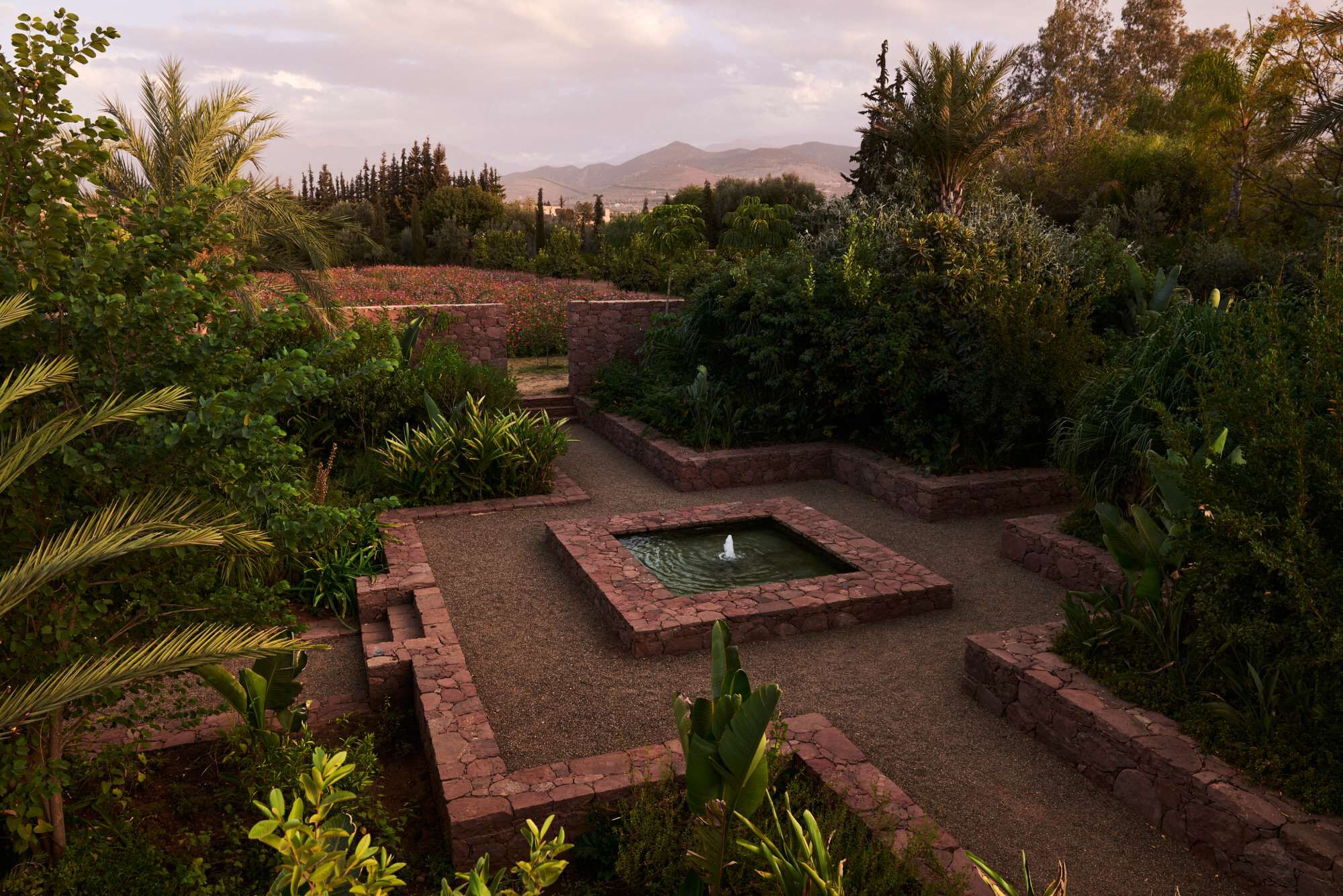 Water flows naturally from the Atlas Mountains down to the parcels. The drystone terraces are home for lemon trees alongside irises, saffron, marigold, cacti, and jasmine.
